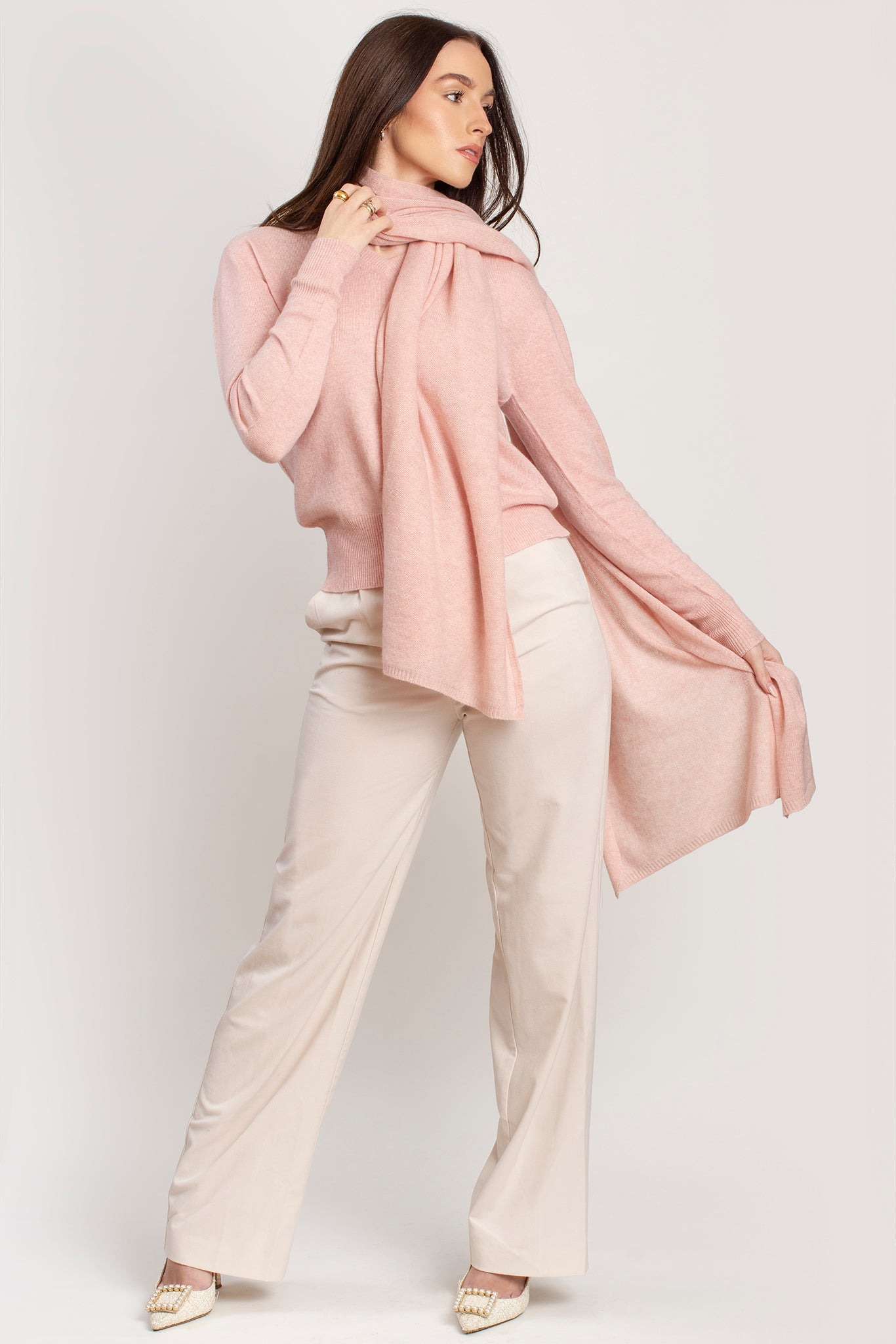 Wrap yourself in luxury with our powder pink knitted cashmere scarf! Made from premium cashmere, this scarf adds a touch of softness and elegance to any outfit. Embrace the feeling of indulgence and elevate your style with this must-have accessory! Ribbed detailing to trim. A beautiful colour with a soft pink hue.